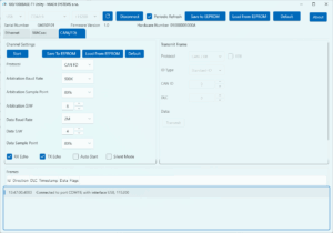 A USB (Virtual COM Port) interface allows configuration of device parameters and reading of status information programmatically. Additionally, the device can operate as a USB-to-CAN(/FD) interface.